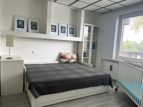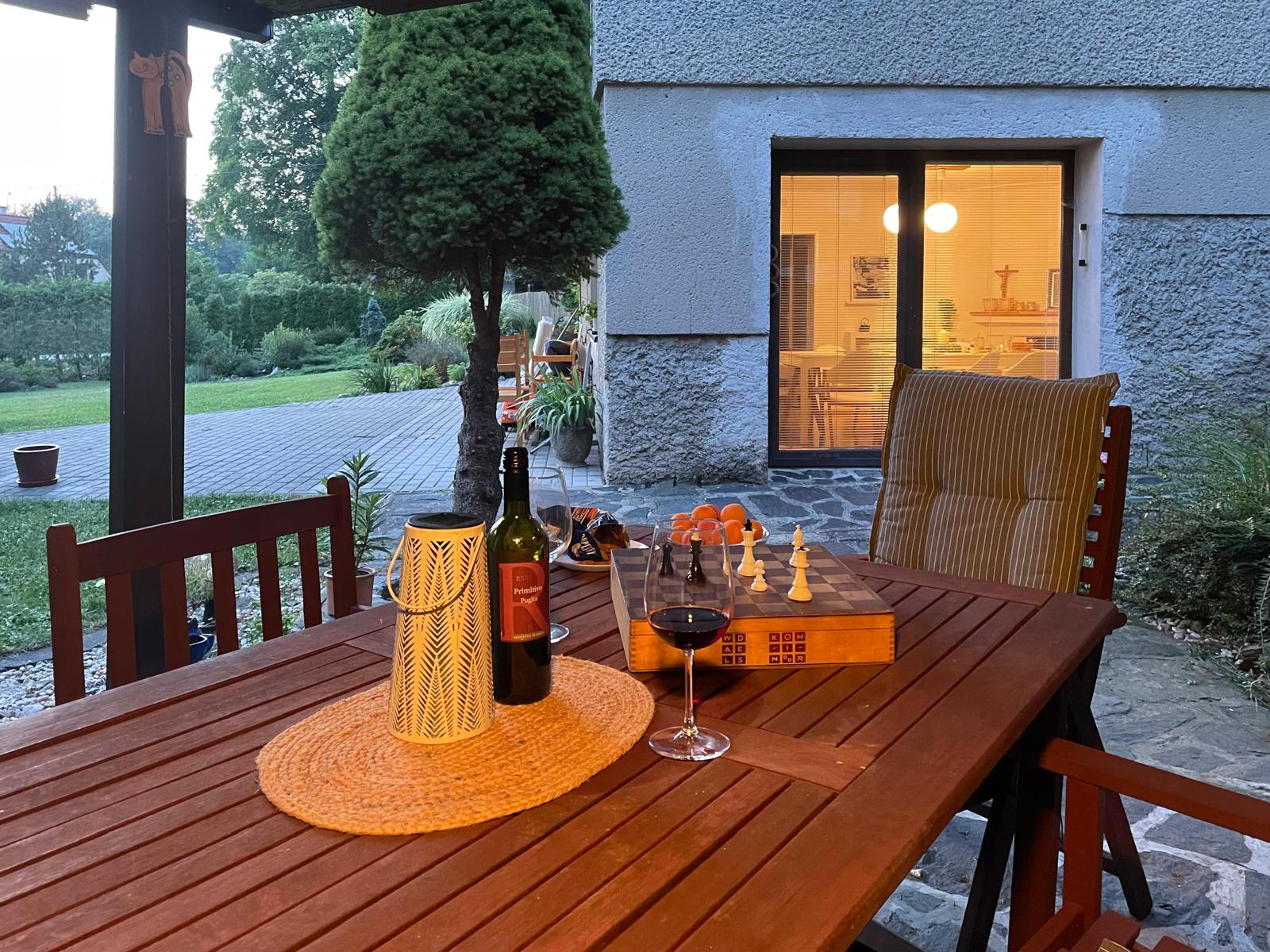 Náš rodinný apartmán je ideální jak pro jednotlivce, tak pro rodiny, kteří chtějí zažít klid přírody a zároveň mít zázemí civilizace. K dispozici vám jsou 2 ložnice a kuchyň s balkonem a výhledem do zahrady. Po celém dni můžete večer strávit s vínem ve venkovním posezením. Ráno vás probudí zpěv ptáků, sem tam ale může projet traktor.
